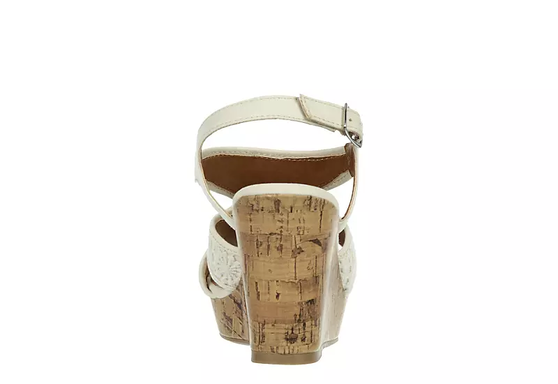 Add something special to your everyday style in the Jellypop Lisbon womenβs wedge sandal. With a fabric upper featuring a feminine lace overlay for extra flair, this buckle strap sandal is an elegant additon to your wardrobe that easily goes with your vibe. The cushioned insole comforts every step while the cork wedge heel adds significant lift that’s stable and appealing.